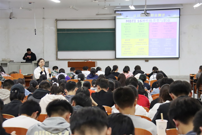 讲座伊始,库尔班妮萨·图尔贡通过大学生就业压力及就业前景的讲解向大家阐述了新生职业生涯规划的重要性。接着她分享了职业规划的三步法和五步法,通过小测试促进新生们提高自我认识,通过“买卖衣服”小剧场让同学们意识到良好性格的养成对未来发展的影响。