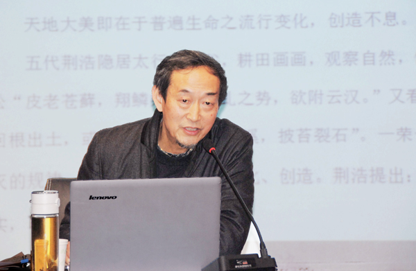 12月10日下午,应美术学院邀请,安徽省书画院副院长,国家一级美术师方贤道教授在滨湖校区学术报告厅作了题为《中国画的品格》的学术讲座。讲座由美术学院副院长陈伟主持,美术学、绘画、书法学专业全体学生及部分教师参加了此次讲座。