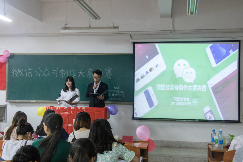 2018 年5月16日星期三晚六点, IT 爱好者 协会在教学楼B208成功举办了IT爱好者协会微信制作决赛活动。出席本次活动的有会长以及第五届IT爱好者协会的几位副会及部长,也有幸邀请到了其他一些协会的会长及副会出席本次活动。