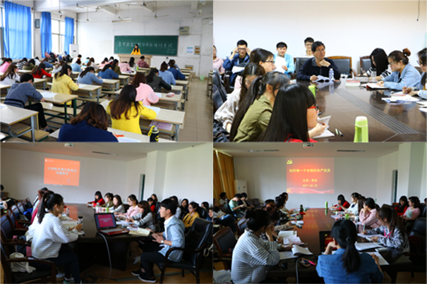 培训过程中,学院党委书记吴云主要围绕如何“端正入党动机,争做合格党员”展开,要求发展对象不仅要争取组织上入党,更要在思想上入党,端正入党动机,全心全意为人民服务。希望发展对象用党员标准严格要求自己,在日常学习、工作、生活中要做到:学习理论,坚定信念;牢记宗旨,勇挑重担;艰苦朴素,勤奋好学;严以律己,争做模范。文学院副书记杜道流介绍了“党章修改的历史进程”。通过回溯党章与纪律建设的历史说明了严明的纪律和规矩是我们党的基本特性和宝贵品质。另外,副院长冀运鲁作了“践行五大发展理念,做创新型人才”的专题报告;郑勇老师介绍了“如何学习、遵守和维护党章”。要求大家学习好党章、遵守好党章、贯彻好党章、维护好党章;朱淑娟老师以“坚持四讲四有做合格党员”为题,要求学员坚持以知促行,做讲政治、有信念,讲规矩、有纪律,讲道德、有品行,讲奉献、有作为的合格党员;李洁老师就“如何做一名合格的共产党员”,从四个方面说明党员要遵守党章、加强党性;要坚定信念、加强学习;要遵纪守法、廉洁正派;要向榜样学习、向群众学习;谢天勇老师就“用社会主义核心价值观引导大学生媒介素养”开展集中培训,用社会主义核心价值观引导大学生媒介素养,牢牢树立大学生的理想信念,更加坚定他们的社会主义信仰。院长周友斌做“谈我党领袖讲话对当今大学生学习和生活的指导作用”的专题讲座,介绍我党领袖的重要讲话,强调我党领袖讲话对当今大学生学习和生活的重要指导作用。在学习上要“好好学习,天天向上”,在生活上要“自立更生,艰苦奋斗”。
