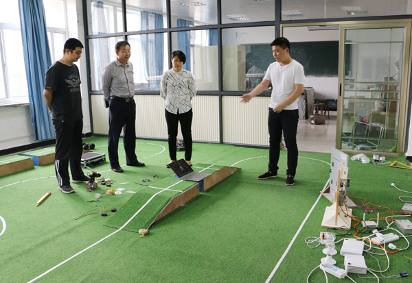 卓越班学生韩徐、王占强、史良东、李伟剑等同学现场为老师演示了自主设计的多路照明通信系统(入选十五届大学生“挑战杯”竞赛复赛作品)、互联网+实验室门禁管理系统(入选十五届大学生“挑战杯”竞赛复赛作品)、自主巡航小车(第十五届“挑战杯”参赛作品)、脉搏监测预警仪等创新作品。李素文对学生创新热情和作品设计给予了充分肯定,她希望同学们能充分利用学院的平台和资源,结合自身专业特色,不断提升专业技能,培养创新创业意识,为将来就业和创业打下扎实的基础,同时要本着精益求精的精神把科技作品设计好完善好,争取获得“挑战杯”金奖。