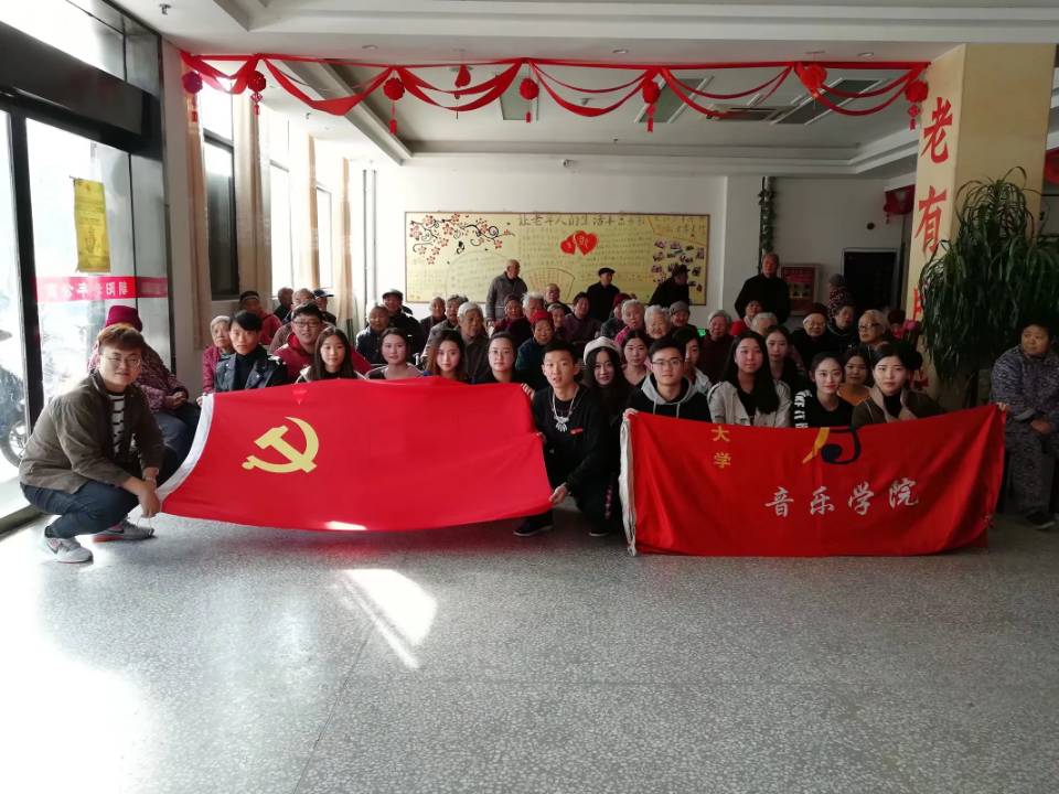 为关注老人晚年生活,给他们带去关心与问候,2018年11月10日星期六,淮北师范大学音乐学院音乐学学生党支部第六十三期学生入党积极分子三班音乐一组在相山区朝阳敬老院进行了一场以“歌舞红色旋律,递爱暖秋社区”为主题的社会实践。